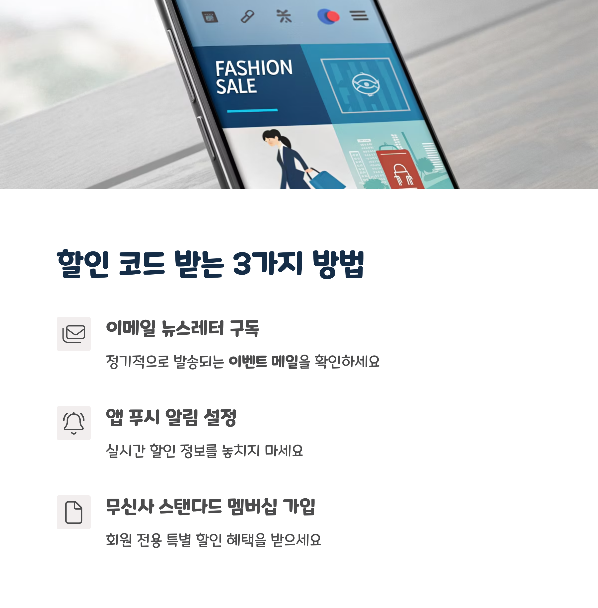 "무신사 세일 코드는 선착순으로 제공되는 경우가 많기 때문에, 미리미리 준비하고 있어야 합니다."