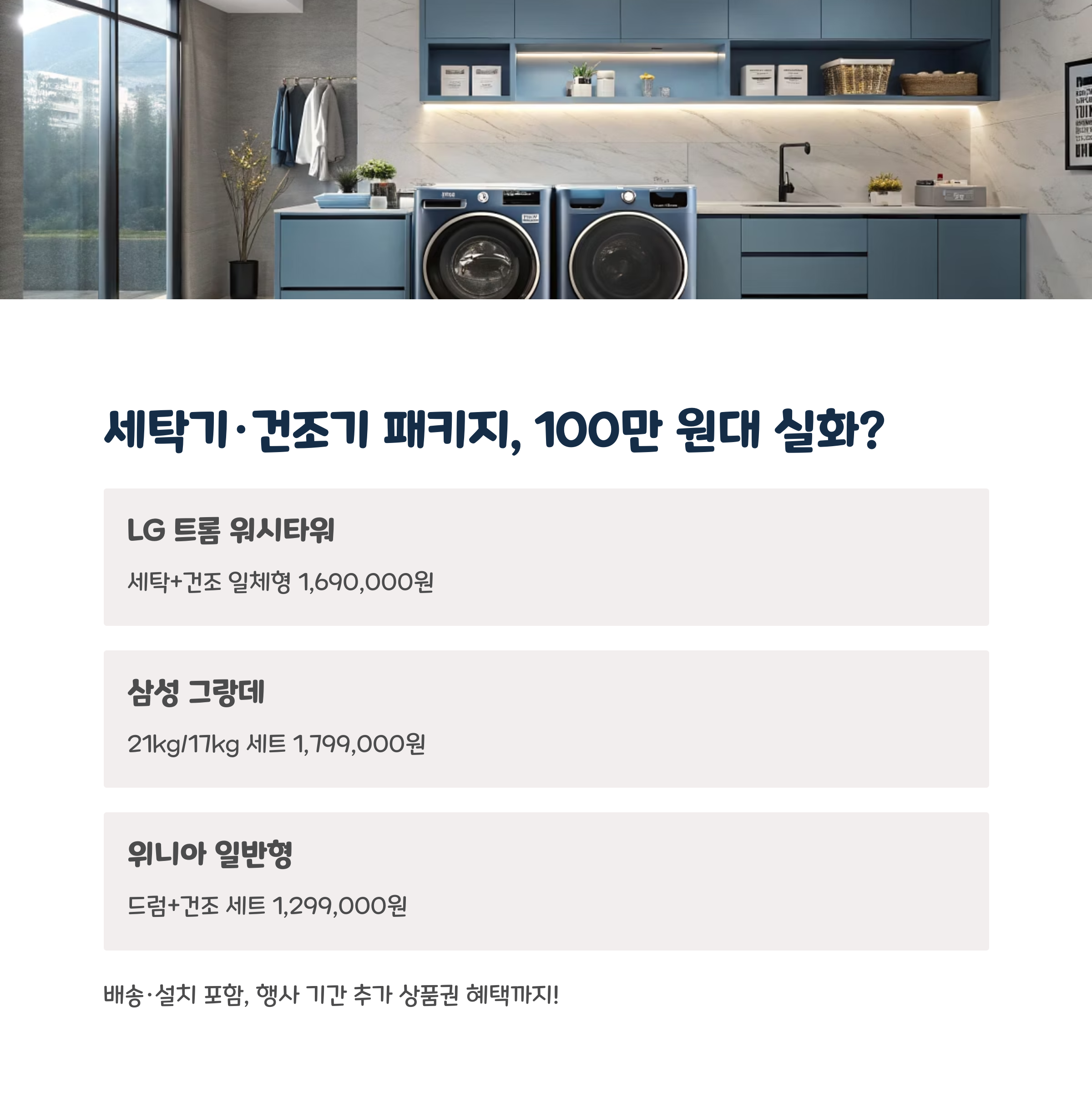 | 삼성 그랑데 세탁기+건조기 | 각 21kg/17kg | 1,799,000원 |