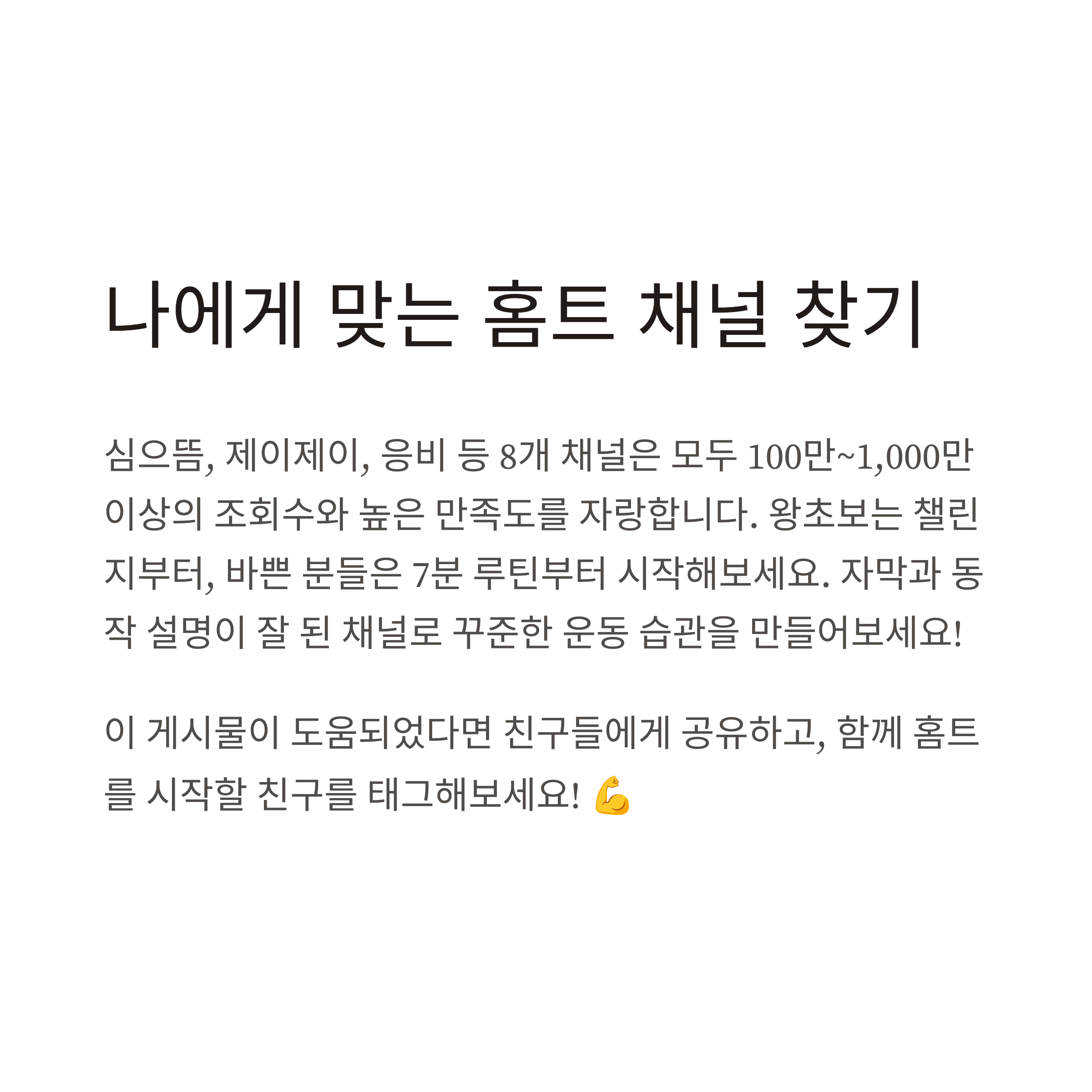 가장 효과적이고 지속 가능한 홈트레이닝 채널 8곳을 정리했습니다.