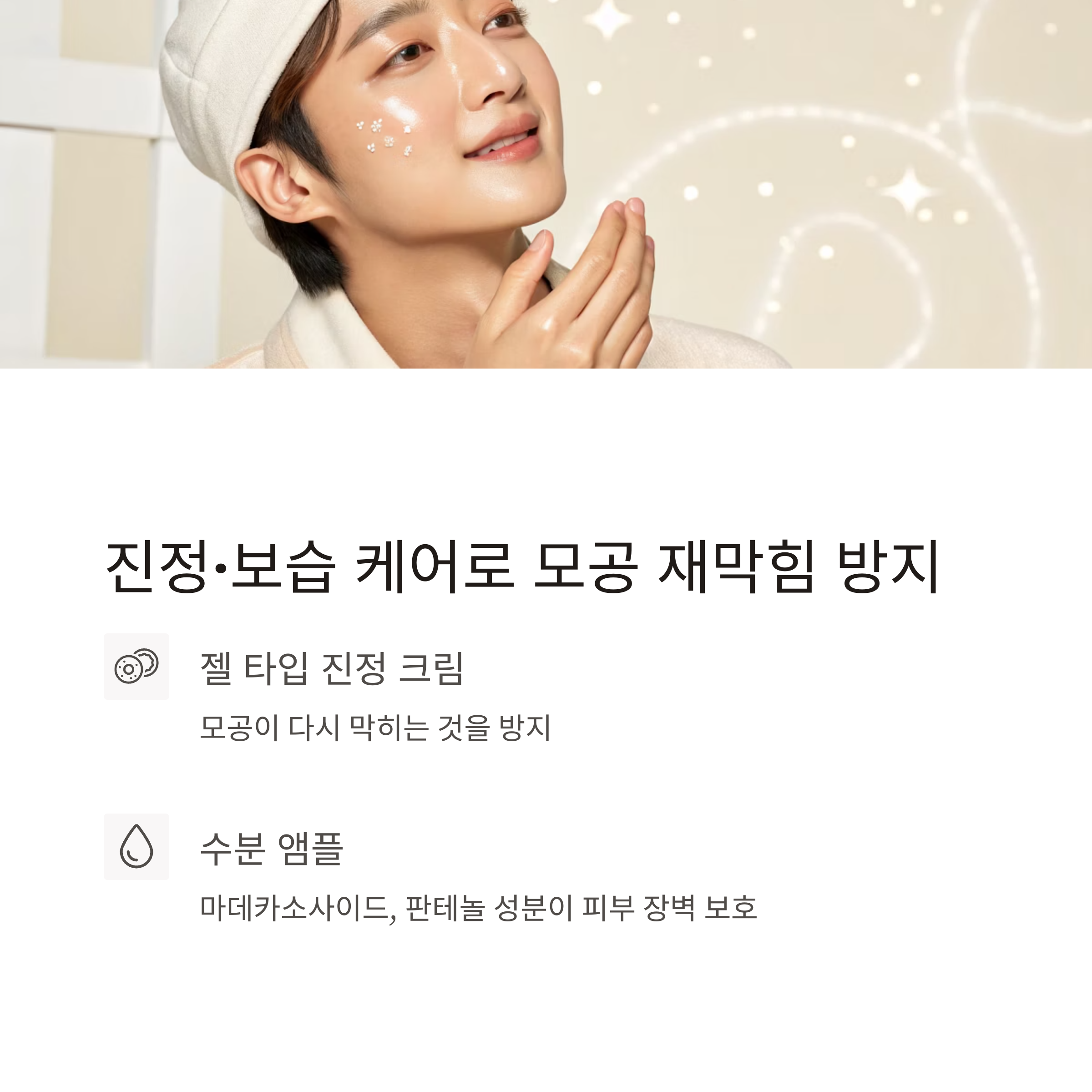 | 보습 | 젤 크림/앰플 | 모공 재막힘 예방 | 매일 필수 |
