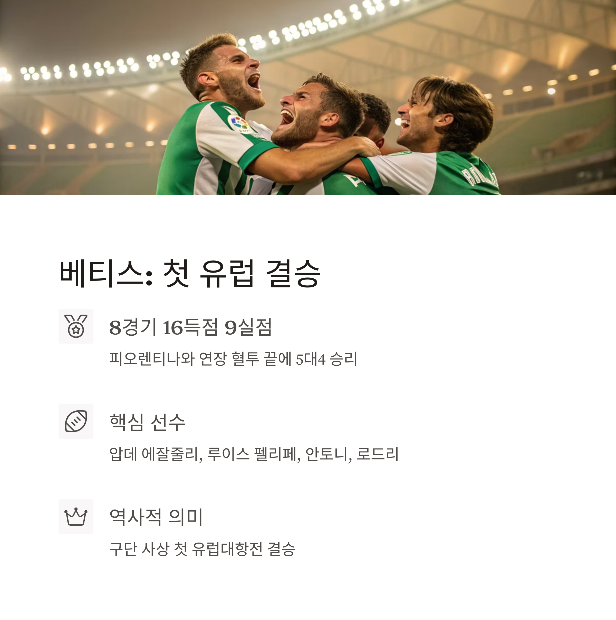 | 베티스 우승 | 스페인 구단 최초 컨퍼런스리그 우승, 구단 역사 최고 업적 |