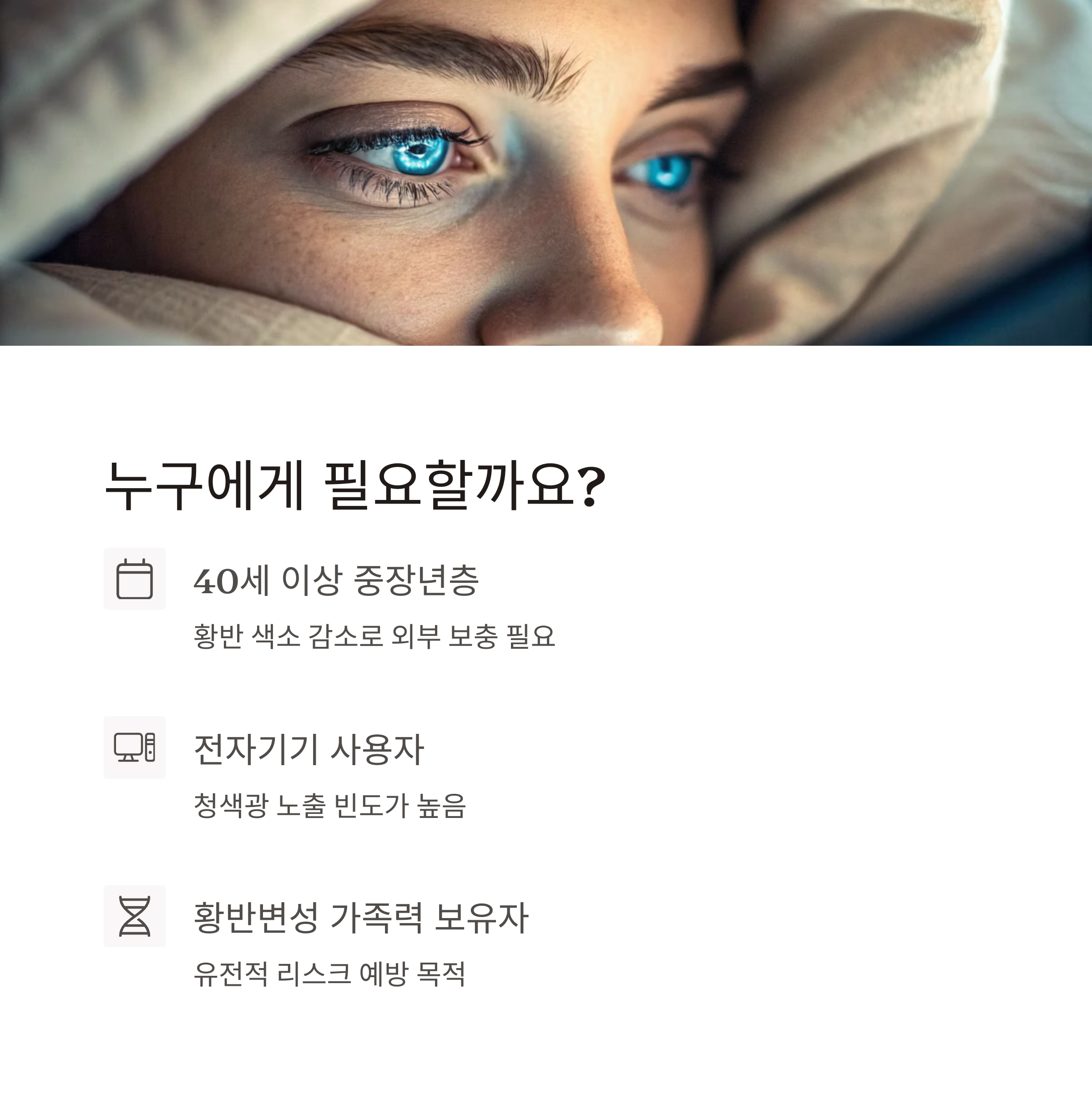 | 40세 이상 중장년층 | 황반 색소 감소로 인한 외부 보충 필요 |