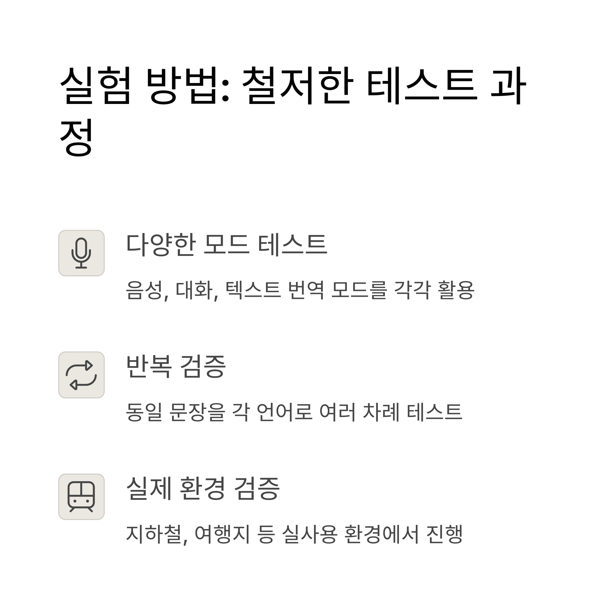 모든 통역 결과는 "자연스러움, 정확성, 속도"를 기준으로 평가했습니다