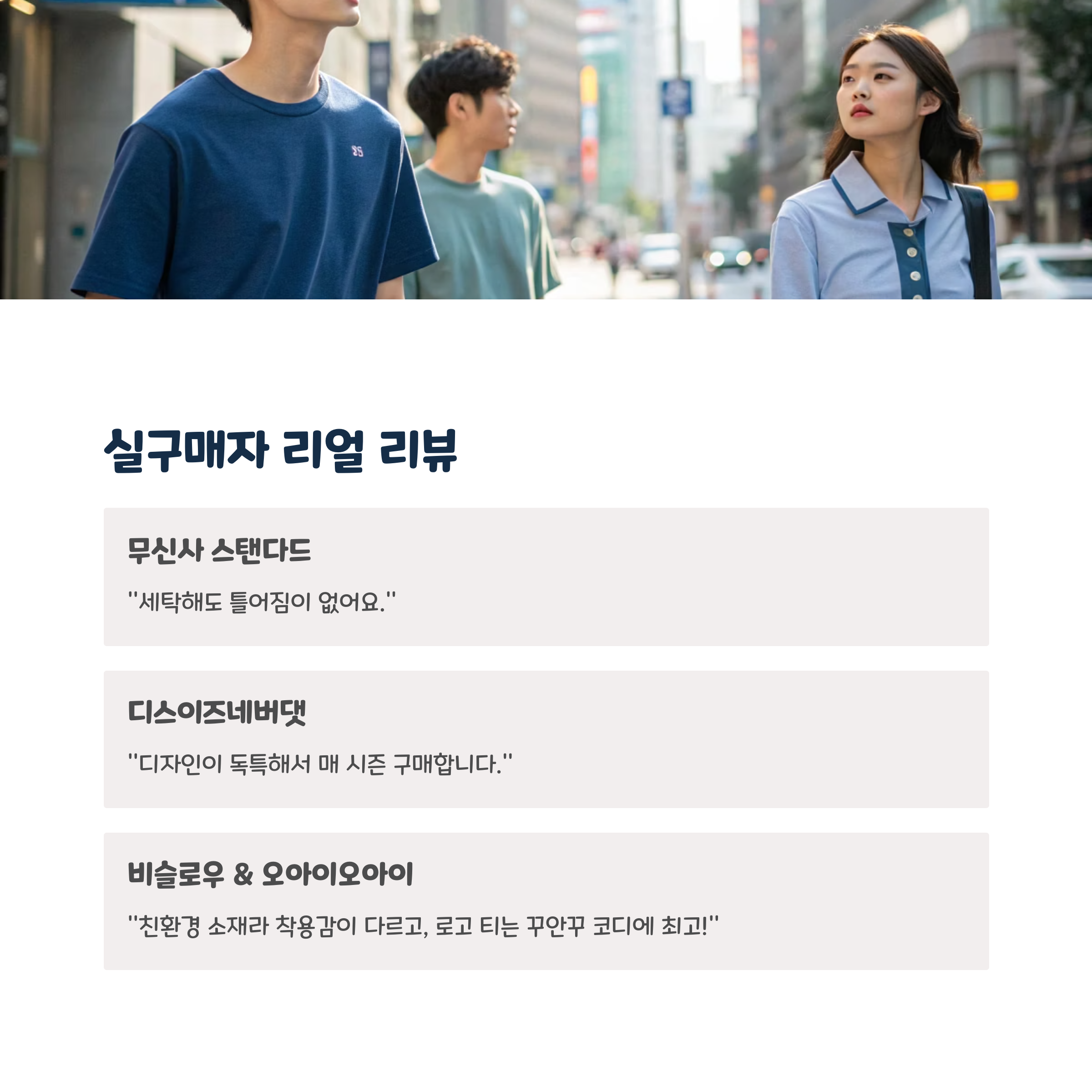 | 친환경 코튼 | 지속가능한 소재 강조 | 비슬로우, 컨티뉴 |