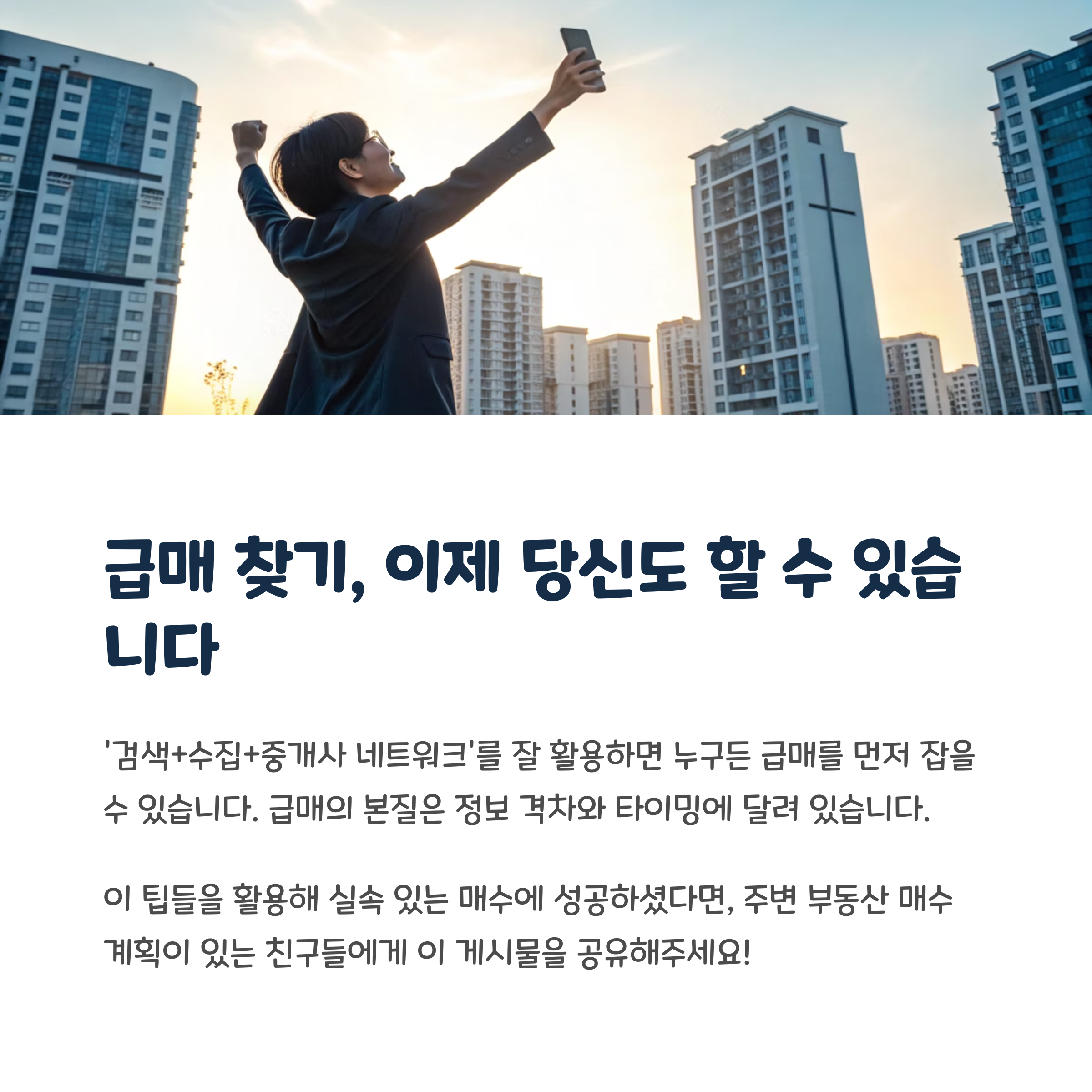 네이버부동산엔 급매 필터는 없지만, ‘검색+수집+중개사 네트워크’를 잘 활용하면 누구든 급매를 먼저 잡을 수 있습니다. 급매의 본질은 정보 격차와 타이밍에 달려 있으며, 조금의 노하우와 습관만 있다면 누구나 실속 있는 매수를 할 수 있습니다.
