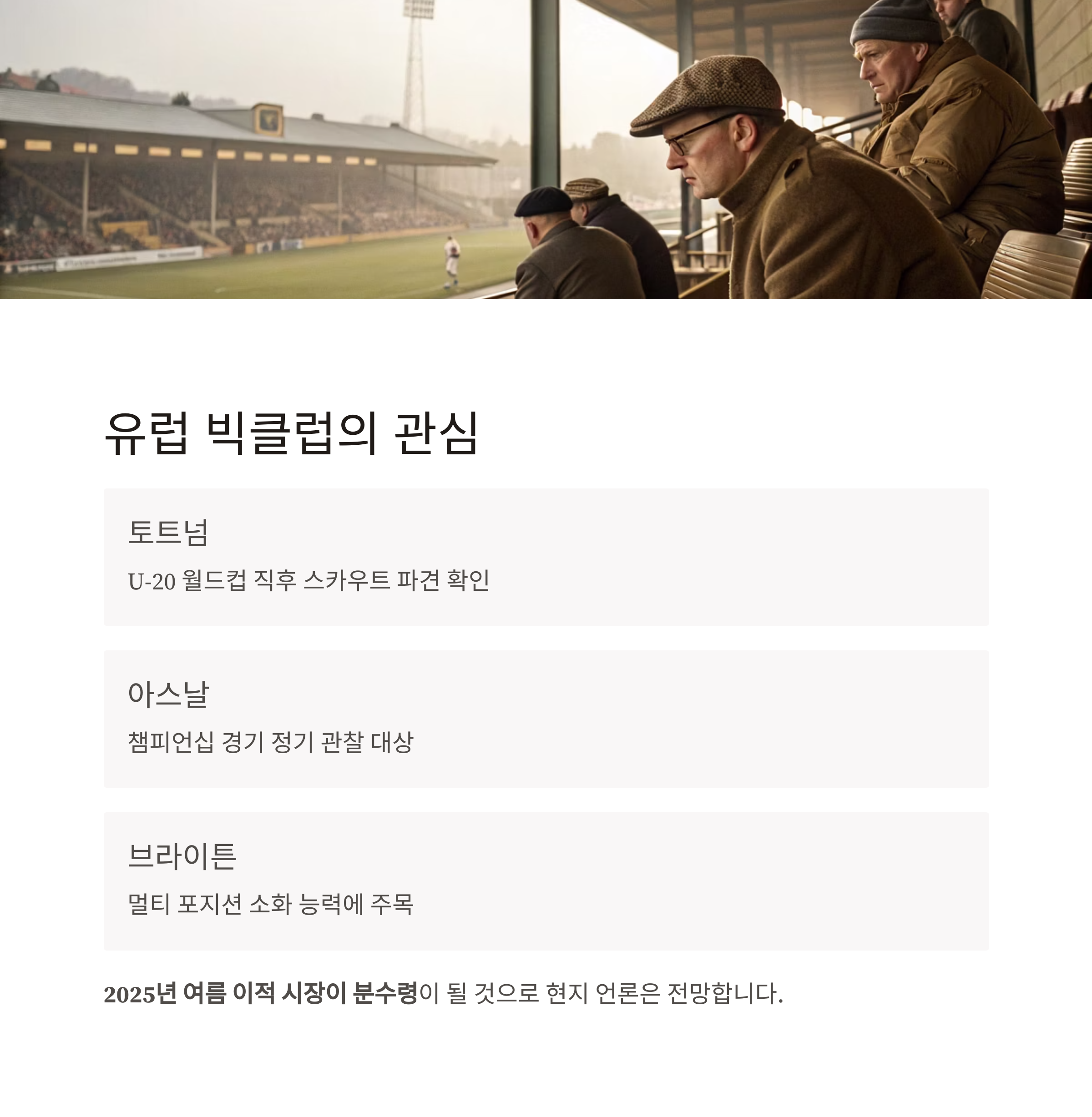 현지 언론: “프리미어리그 진입은 시간 문제. 2025년 여름 이적 시장이 분수령”