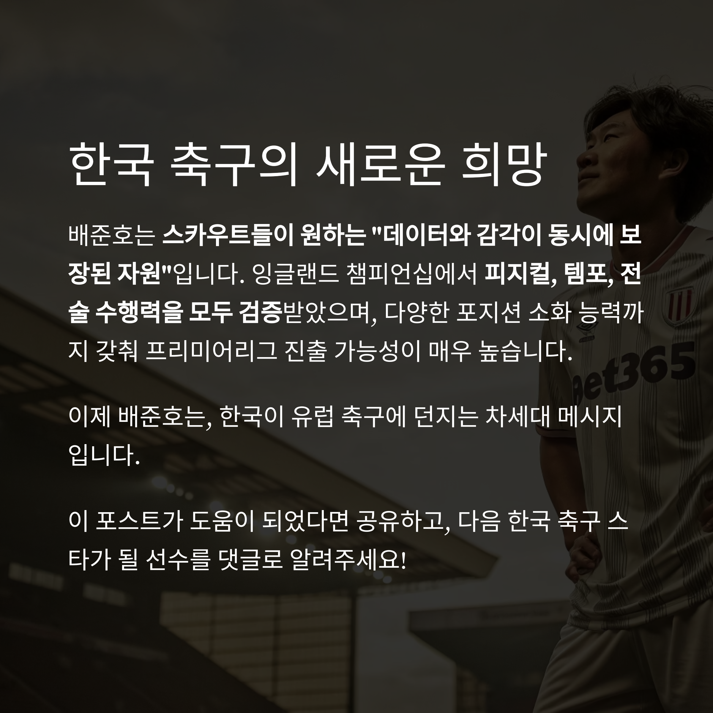 이제 배준호는, 한국이 유럽 축구에 던지는 차세대 메시지입니다.