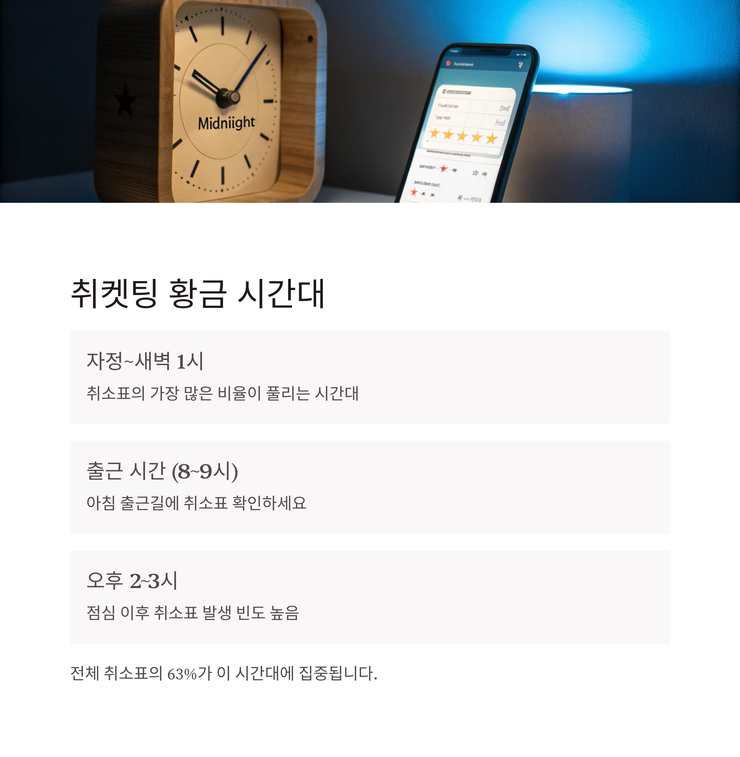취켓팅 타이밍: 자정·출근·점심 시간대가 핵심