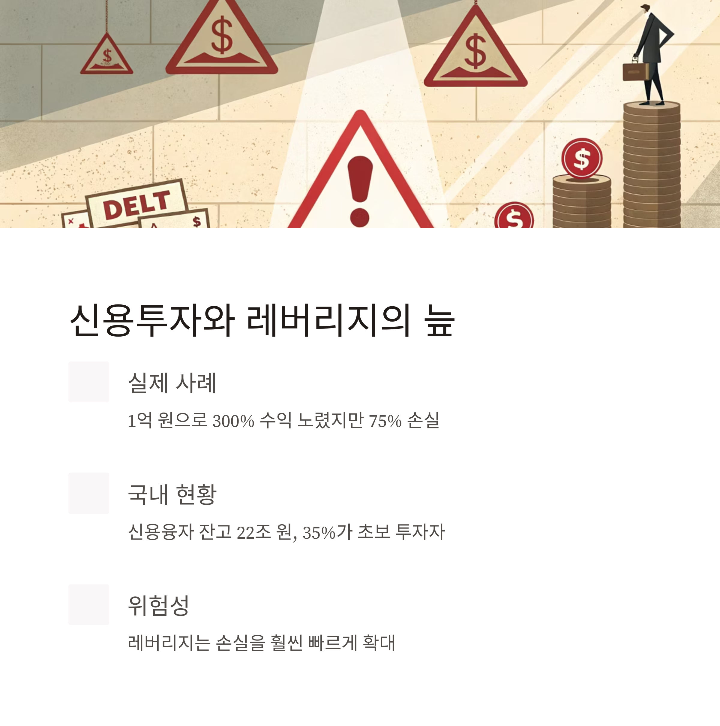 | 신용 남용 | 내 자산 한도 내에서만 투자, 빚투 지양 |