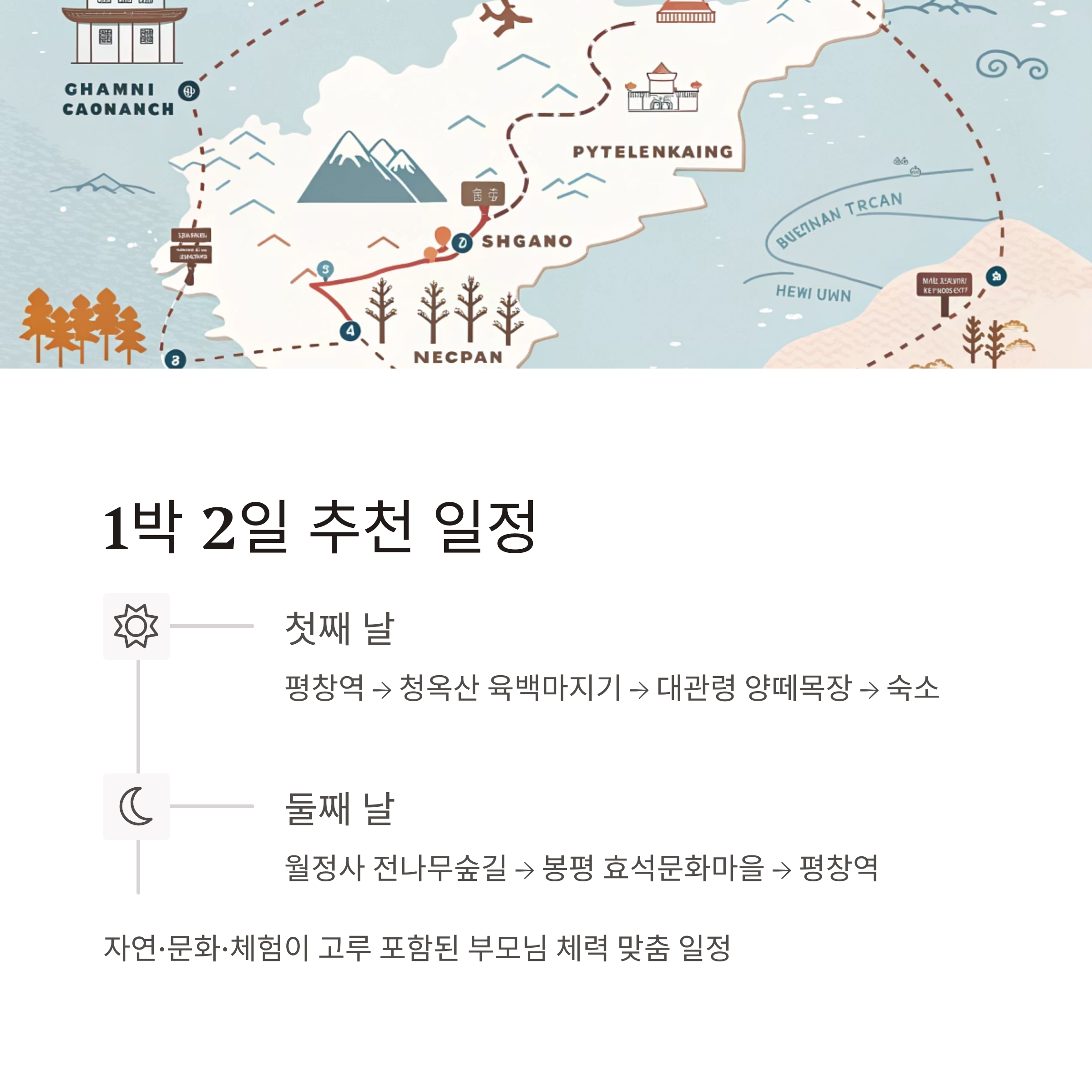 이 일정은 부모님의 체력과 동선을 고려한 최적의 루트로, 자연·문화·체험이 고루 포함됩니다.
