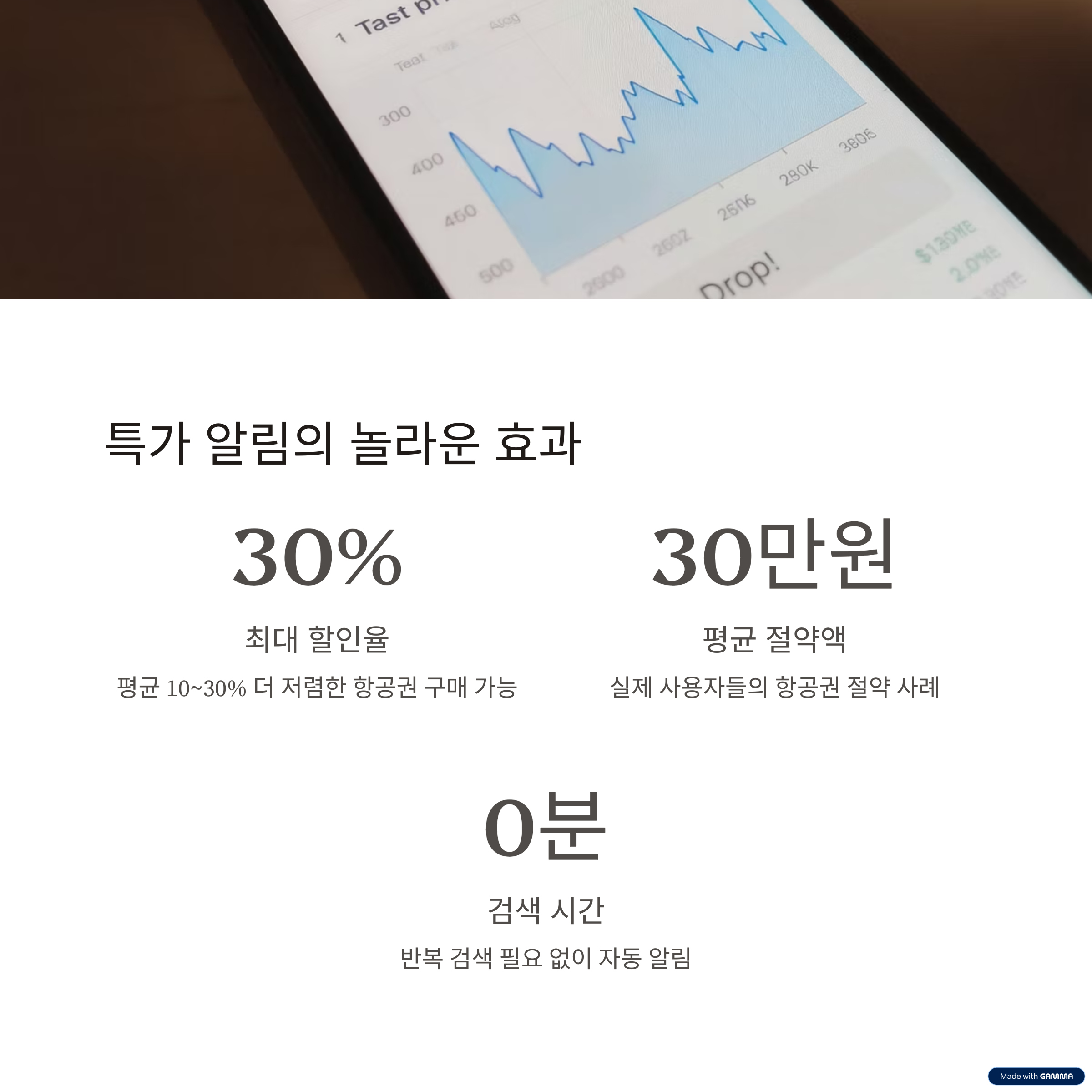매번 검색하지 마세요, 알림 설정만으로 최저가 항공권을 받습니다